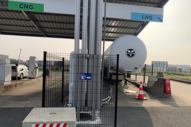 In LKW-Rasthof rein, man muss am Tor ein Ticket ziehen welches aber in LKW Höhe ist, also ist Klettern gefragt. Gleich nach der Einfahrt ist eine sehr lange Tankstellenanlage sichtbar. CNG Säulen sind am Ende ganz rechts. Neben den CNG Säulen steht ein LNG auflieger ( Ohne Zugmaschine). Dieser hat an der Rechten Seite ein Box mit Zahlungsterminal. Dieser Kasten ist manchmal geschlossen, und er wird mit einer Grüner Taste elektrisch geöffnet. Drinnen ist ein Gewöhnlicher Zahlungsterminal auch für CNG Säulen. Nach dem Tankvorgang fährt man zum Ausgang (ziemlich lange Strecke) Hier wird Nummerschild automatisch erkannt und nach ca 30 Sekunden das Tor geöffnet (es seht zuerst als ob nichts passiert) Ticket braucht man dann nicht mehr (wenn der Aufenhalt auf dem Gelände unter 1 Std war)