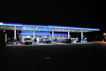 Zapfstellen: diese befinden sich auf Höhe der linken Seitenwand des Verkaufsshops. Es kann beidseitig gleichzeitig getankt werden.